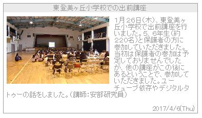 | 奈良市立東登美ヶ丘小学校 | 1月26日 | 5、6年生、保護者 | 227 |