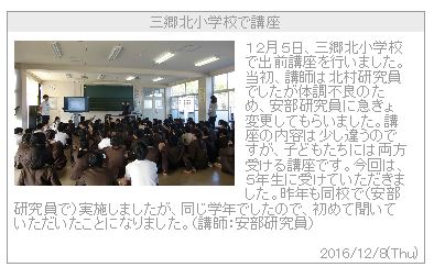 | 三郷北小学校 | 12月5日 | 5年生 | 95 |